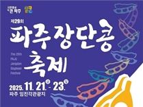 제29회 파주장단콩축제가 오는 21일부터 23일까지 임진각관광지에서 열린다. 파주시는 7년 연속 ‘경기대표관광축제’로 선정된 이번 행사를 통해 지역 대표 농특산물인 파주장단콩을 알리고 도농상생형 관광축제로 발전시키겠다고 밝혔다.축제는 ‘청정파주, 장단맞춰 알콩달콩’을 주제로 청정 임진강 유역에서 재배된 장단콩의 우수성을