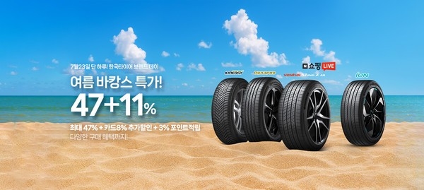 한국타이어앤테크놀로지(이하 한국타이어)가 오는 23일 하루 동안 네이버 공식 브랜드스토어에서 '브랜드데이' 특별 프로모션과 함께 쇼핑라이브 방송을 진행한다고 밝혔다.