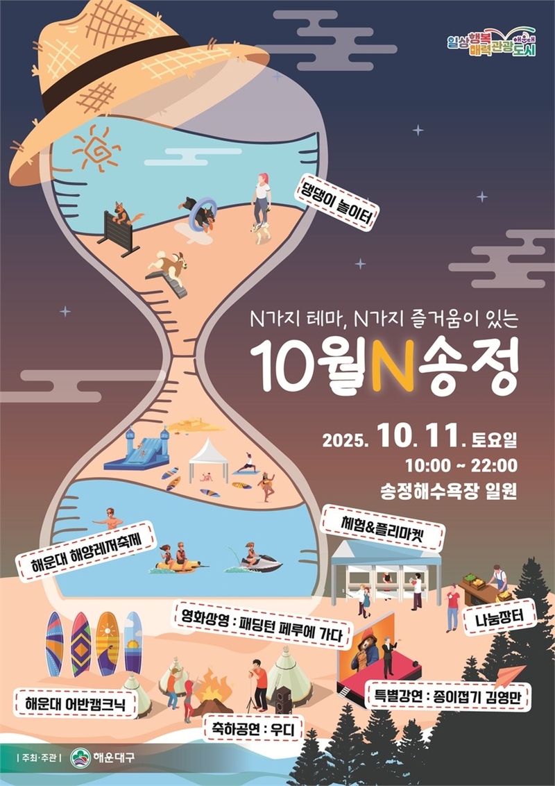 부산 해운대구(구청장 김성수)는 오는 10월 11~12일 해운대해수욕장과 송정해수욕장에서 ‘N가지 테마, N가지 즐거움이 있는 10월N 해운대·송정’을 개최한다고 밝혔다.