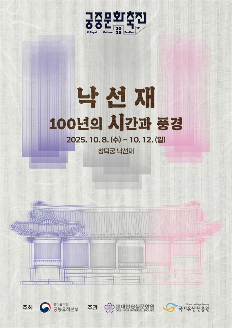 대한황실문화원은 오는 8~12일 서울 종로구 창덕궁 낙선재에서 ‘2025 가을 궁중문화축전’의 주요 행사인 ‘낙선재 100년의 시간과 풍경’ 전시회를 개최한다고 밝혔다. 이번 전시는 대한제국에서 현대에 이르기까지 격변의 시대를 함께한 낙선재의 의미를 돌아보고, 황실 여성 인물들의 삶과 정신을 집중 조명한다.
