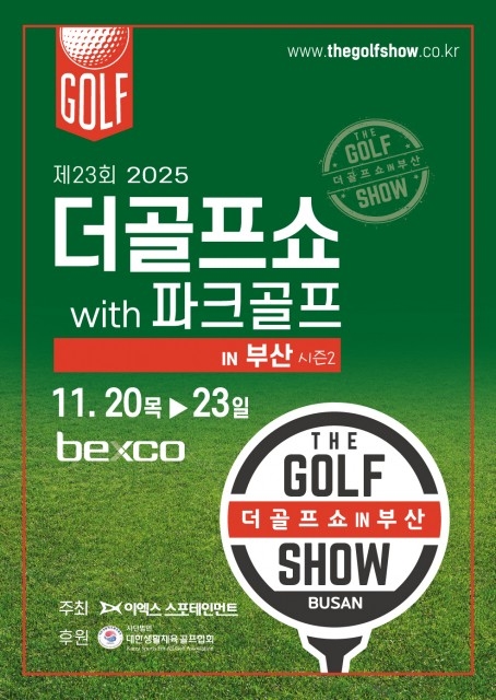 경상권 마지막 골프 박람회인 ‘제23회 더골프쇼 in 부산 with 파크골프 시즌2’가 11월 20일부터 23일까지 나흘간 부산 벡스코 제2전시장 4층 홀에서 열린다. 경기 침체 속에서도 골프 시장 활력을 높이고 부산·경남 지역의 골프 인구 확대를 도모하기 위해 마련된 행사로, 개막 전부터 골퍼들의 관심이 높다.