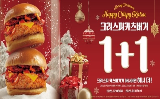 수제버거 브랜드 프랭크버거는 연말 시즌을 맞아 ‘크리스피카츠버거 1+1’ 이벤트를 진행한다고 밝혔다. 이번 프로모션은 고객 감사 차원에서 마련된 행사로, 인기 메뉴인 크리스피카츠버거를 구매하면 동일 메뉴를 한 개 더 무료로 제공하는 혜택이 적용된다.