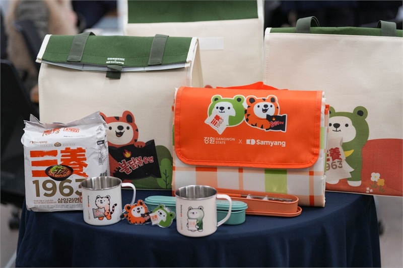 최근 삼양식품은 강원도와 협업해 ‘강원 방문의 해’ 홍보 굿즈를 선보였다. 이번 굿즈는 강원도 공식 캐릭터인 ‘강원이·특별이’와 K푸드를 결합한 것이 특징으로, 지역 이미지와 글로벌 식품 브랜드를 동시에 알리는 방향으로 기획됐다. 구성은 돗자리, 보랭백, 수저세트, 머그컵으로 이뤄진 피크닉 세트와 스마트폰 그립톡 등 총 5종이다. 해당 굿즈는 동계 관광 시즌을 시작으로 국내 각종 축제와 행사 현장, 해외 로드쇼 등을 통해 강원 관광 홍보에 활용될 예정이다.