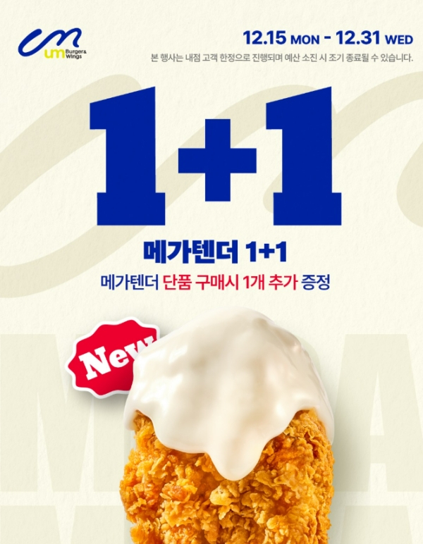 움버거앤윙스, 초대형 치킨텐더 ‘메가텐더’ 출시…연말 1+1 프로모션 진행