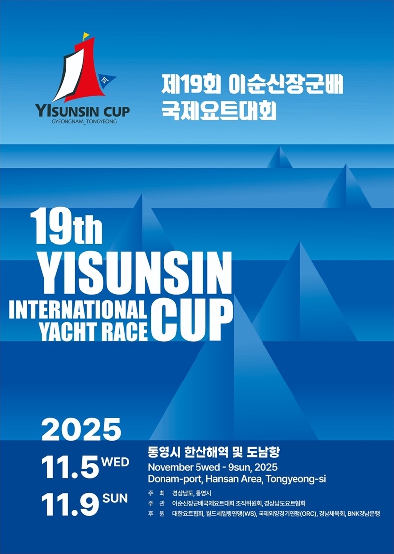 경남도와 통영시는 내달 5일부터 9일까지 통영 도남관광지와 한산도 해역 일원에서 ‘제19회 이순신장군배 국제요트대회’를 개최한다고 밝혔다.이번 대회에는 한국을 비롯해 미국, 중국, 일본, 말레이시아 등 10개국 400여 명의 선수들이 참가해, 총상금 5천200만 원을 놓고 한려수도 통영 앞바다에서 열띤 레이스를 펼친다.