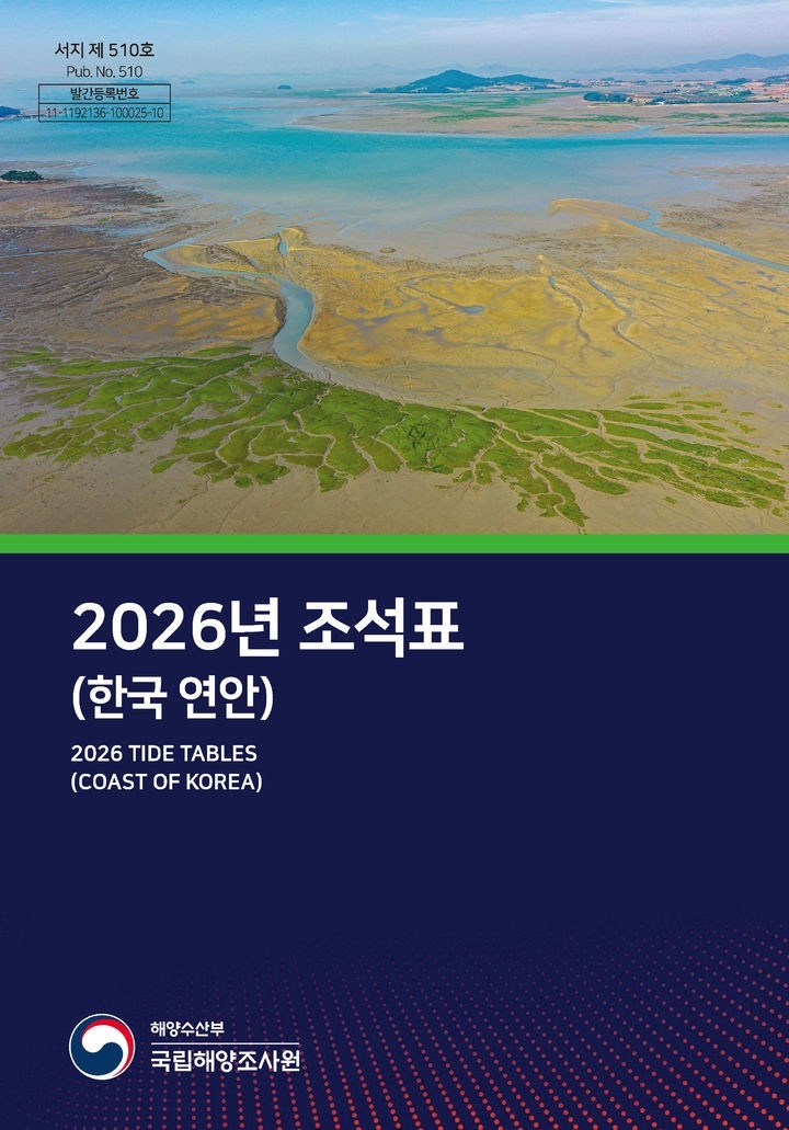 해양수산부 국립해양조사원은 바다를 이용하는 국민이 조석 정보를 손쉽게 확인하고 안전한 해양 활동을 할 수 있도록 ‘2026년 조석표(한국 연안)’를 발간했다고 밝혔다.조석표는 선박의 입출항, 어업 활동, 갯벌 체험 등 다양한 해양 활동에 필요한 기초 자료를 제공하는 책자로, 전국 주요 항만과 연안의 고조(만조)·저조(간조