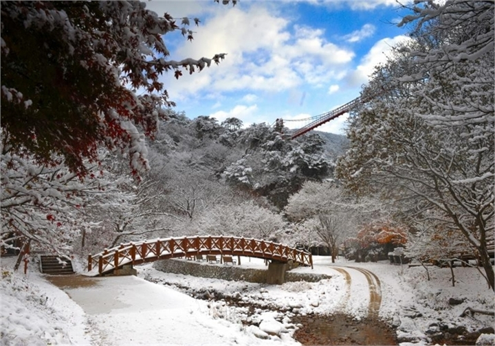 전북 순창군은 설 연휴 기간인 오는 28일부터 30일까지 지역의 대표 관광지인 강천산군립공원과 용궐산 하늘길을 무료로 개방한다고 밝혔다.'호남의 소금강'으로 불리는 강천산군립공원은 빼어난 자연경관을 자랑하는 명소로, 특히 겨울철에는 눈 덮인 암벽과 얼음폭포가 어우러진 절경이 관광객들의 발길을 사로잡는다. 용궐산 하늘길은