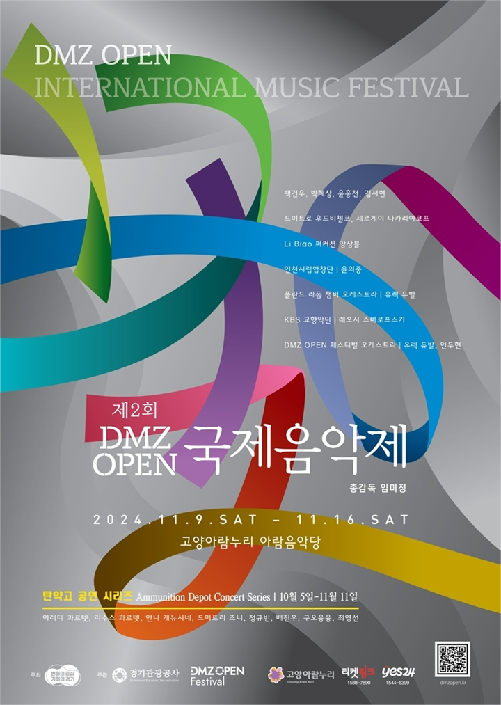 경기도와 경기관광공사는 오는 11월 9일(토)부터 16일(토)까지 고양아람누리 아람음악당에서 ≪DMZ OPEN 국제음악제≫를 개최한다고 밝혔습니다. ‘열린 DMZ, 더 큰 평화’를 주제로 한 이번 음악제는 세계 최정상급 아티스트들이 출연하는 수준 높은 클래식 음악 축제로, DMZ의 생태와 평화에 대한 염원을 음악을 통해