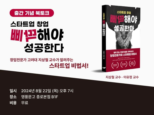 페스트북은 지상철 교수와 이유정 교수의 도서 ‘스타트업 창업 삐딱해야 성공한다’ 출간을 기념해 북토크 행사를 개최한다고 밝혔다. 이 행사는 8월 22일 영풍문고 종각 종로본점에서 열릴 예정이다.