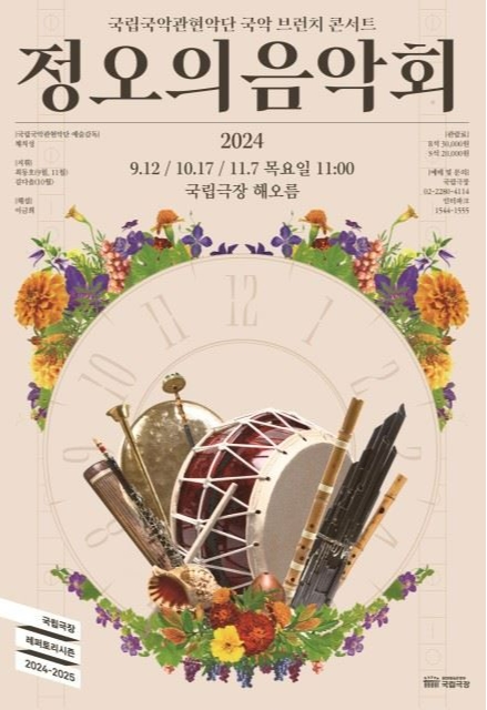 국립국악관현악단(예술감독 겸 단장 채치성)은 고품격 국악 브런치 콘서트 ‘정오의 음악회’를 오는 9월 12일(목) 오전 11시 국립극장 해오름극장에서 공연한다.