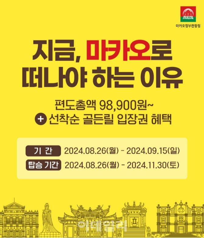 에어부산이 마카오정부관광청과 협력해 마카오 관광 활성화를 위한 다양한 프로모션을 진행한다. 이번 프로모션은 부산-마카오 노선을 이용하는 승객을 대상으로 진행되며, 오는 8월 26일부터 9월 15일까지 항공권 특가 이벤트가 열린다.