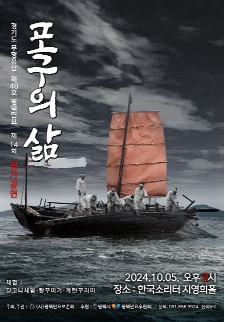 2024 평택민요 정기공연 ‘포구의 삶’은 10월 5일(토) 오후 2시에 진행되며, 별도의 예약 없이 무료로 관람할 수 있다.