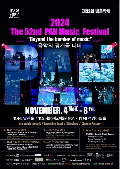 국제현대음악협회 한국위원회(ISCM Korea)가 주최하고 현대문화기획이 주관하는 ‘제52회 범음악제(Pan Music Festival)’가 돌아오는 11월 4일부터 8일까지 ‘Beyond the border of music (음악의 경계를 너머)’의 타이틀로 개최된다.