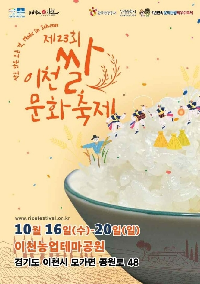 이천시(시장 김경희)가 오는 16일부터 20일까지 5일간 이천시 농업테마공원에서 제23회 이천쌀문화축제를 개최한다.