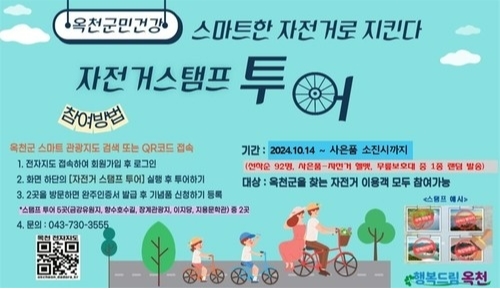 옥천군이 오는 14일부터 관내 주요 관광지를 자전거로 돌아볼 수 있는 ‘자전거 스탬프 투어’를 시작한다. 이번 투어는 군이 지난해 구축한 스마트 관광 전자지도와 음성 안내 시스템을 활용해, 자전거 이용 활성화와 지역 경제에 기여하려는 취지에서 기획됐다.