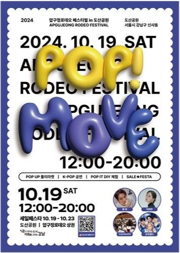 서울 강남구(구청장 조성명)가 오는 10월 19일 정오부터 오후 8시까지 도산공원에서 '압구정로데오 페스티벌'을 개최하며, 19일부터 23일까지는 세일페스타도 함께 진행됩니다. 이번 축제는 'POP! MOVE'라는 슬로건 아래 압구정로데오 상권을 하나의 팝업 콘셉트로 재구성해, 다양한 즐길 거리와 볼거리를 제공합니다.