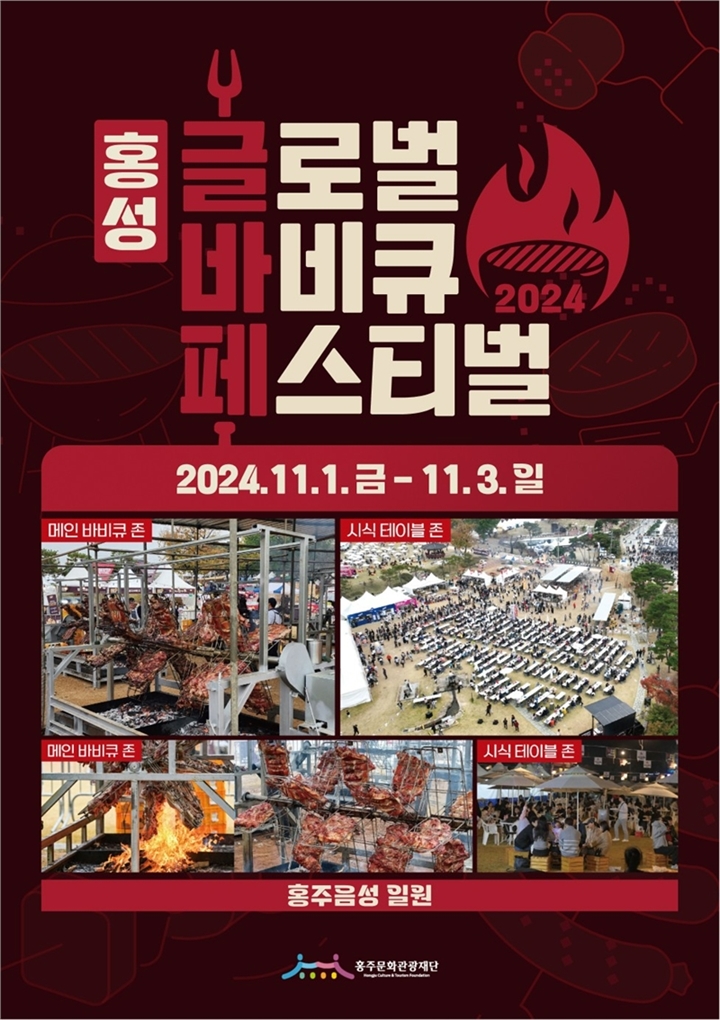 충남 홍성군은 오는 11월 1일부터 3일까지 홍주읍성 일원에서 '글로벌 바비큐 페스티벌'을 개최한다고 22일 밝혔다. 이번 축제에서는 한우와 한돈 바비큐를 비롯한 다양한 메뉴를 즐기며, 230만 송이 국화로 꾸며진 국화 조형물도 감상할 수 있다.