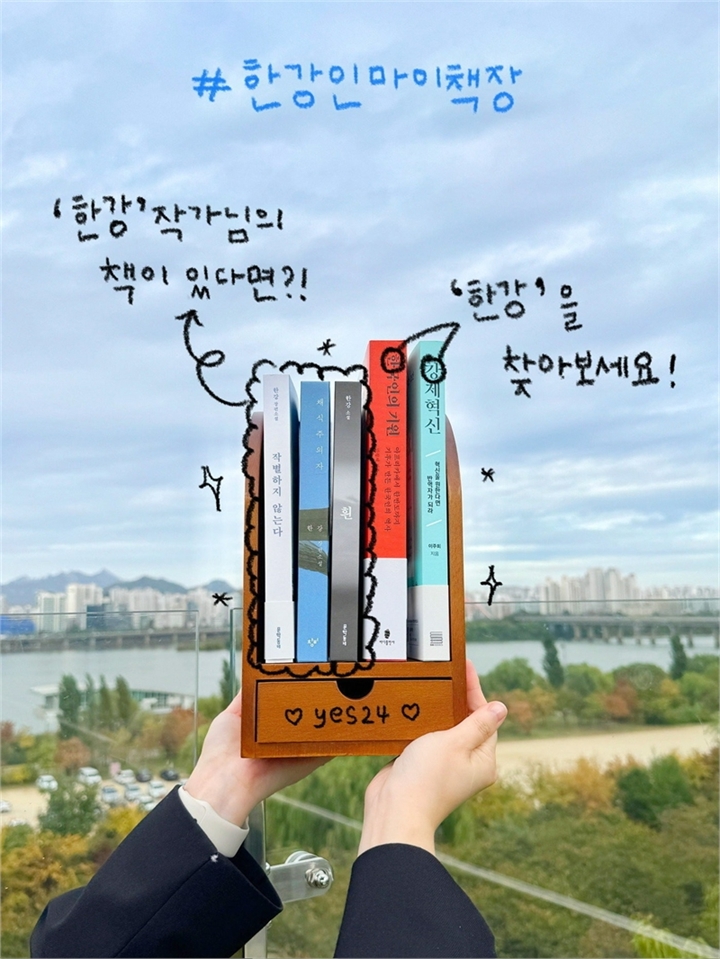 또 한강 작가의 책이 포함된 책장 등 ‘한강’과 관련된 독서 사진을 SNS에 인증하는 ‘#한강인마이책장’ 이벤트를 11월 30일까지 실시하고 △한강뷰 호텔 라운지 식사권(2명) △YES상품권 1만원(24명)의 경품을 제공한다. 이어 예스24 독서 커뮤니티 사락 내 한강 작품 읽기 모임에 참여하고 후기와 리뷰를 남긴 전원에게 YES포인트를 증정하는 ‘사락에서 한강 읽기’ 행사 등을 순차적으로 진행할 예정이다.