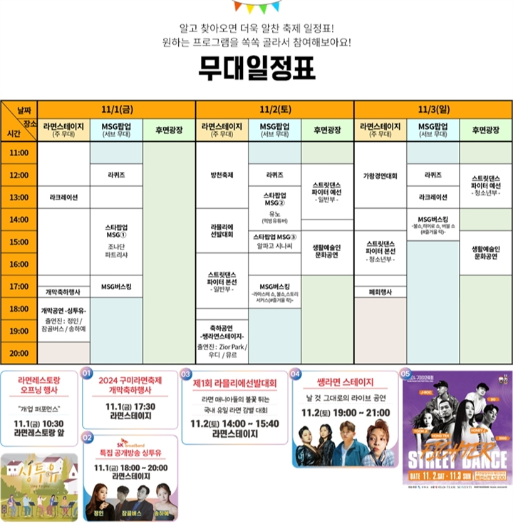 자세한 정보는 구미라면축제 공식 홈페이지(구미라면.com)에서 확인할 수 있다.
