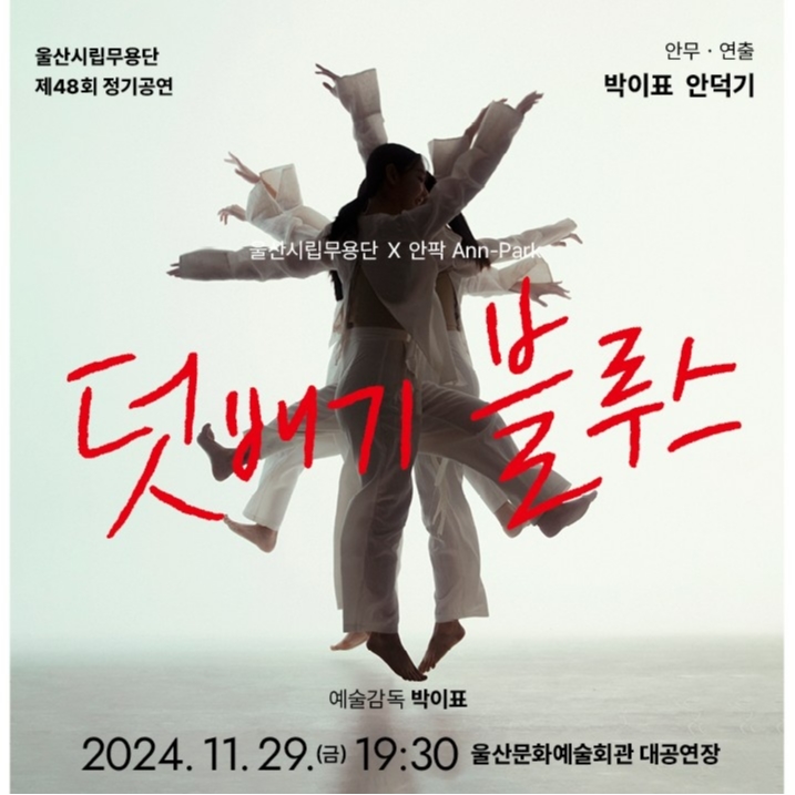 울산시립무용단이 오는 29일 오후 7시 30분 울산문화예술회관 대공연장에서 제48회 정기공연 덧배기 블루스를 선보인다. 이번 공연은 ‘2013 창작산실 한국무용 우수작품전’에서 큰 호평을 받은 *포구락(ROCK)*의 주요 장면을 새롭게 구성한 것으로, 안덕기 한국예술종합학교 교수와 박이표 울산시립무용단 예술감독이 공동 연출과 안무를 맡았다. 기획에는 박정수 컬처앤유 대표가 참여해 무대의 깊이를 더했다.