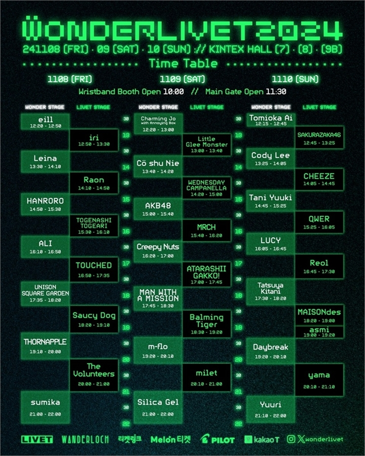 축제 마지막 날은 일본 싱어송라이터 유우리가 헤드라이너로 무대에 오르며, 인기 애니메이션 최애의 아이 OST를 부른 기타니 다쓰야와 한국 걸밴드 QWER 등이 함께 피날레를 장식한다.