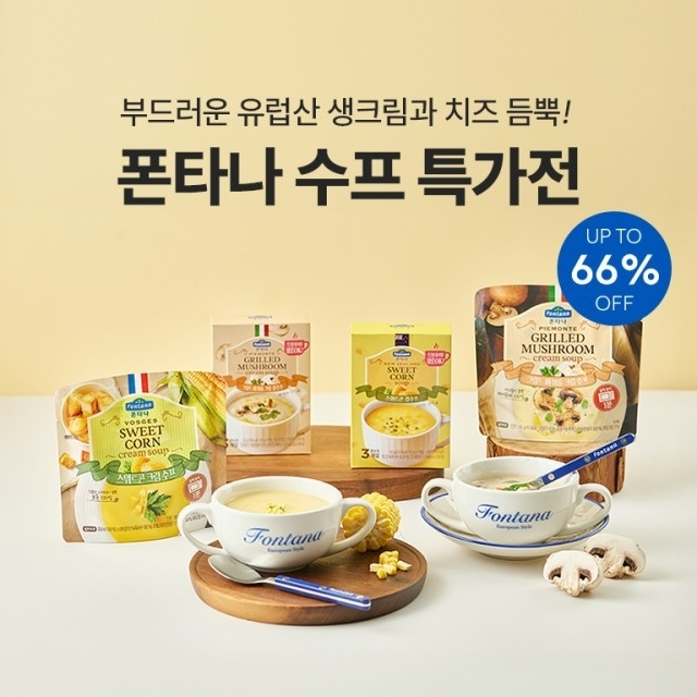 폰타나는 유럽 정통 방식 그대로 화이트 루를 넣어 더욱 부드럽고, 99.98% 유크림으로 만든 유럽산 생크림 등 엄선한 원재료를 듬뿍 담은 폰타나 수프로 몸과 마음을 따뜻하고 든든하게 채우시길 바라는 마음에 최대 66% 할인 기획전을 준비했다며, 올 겨울 강력한 추위가 예고된 만큼 이번 기회에 몸과 마음을 따뜻하게 해줄 다채로운 폰타나 제품을 넉넉하게 준비해 두셔도 좋겠다고 밝혔다.