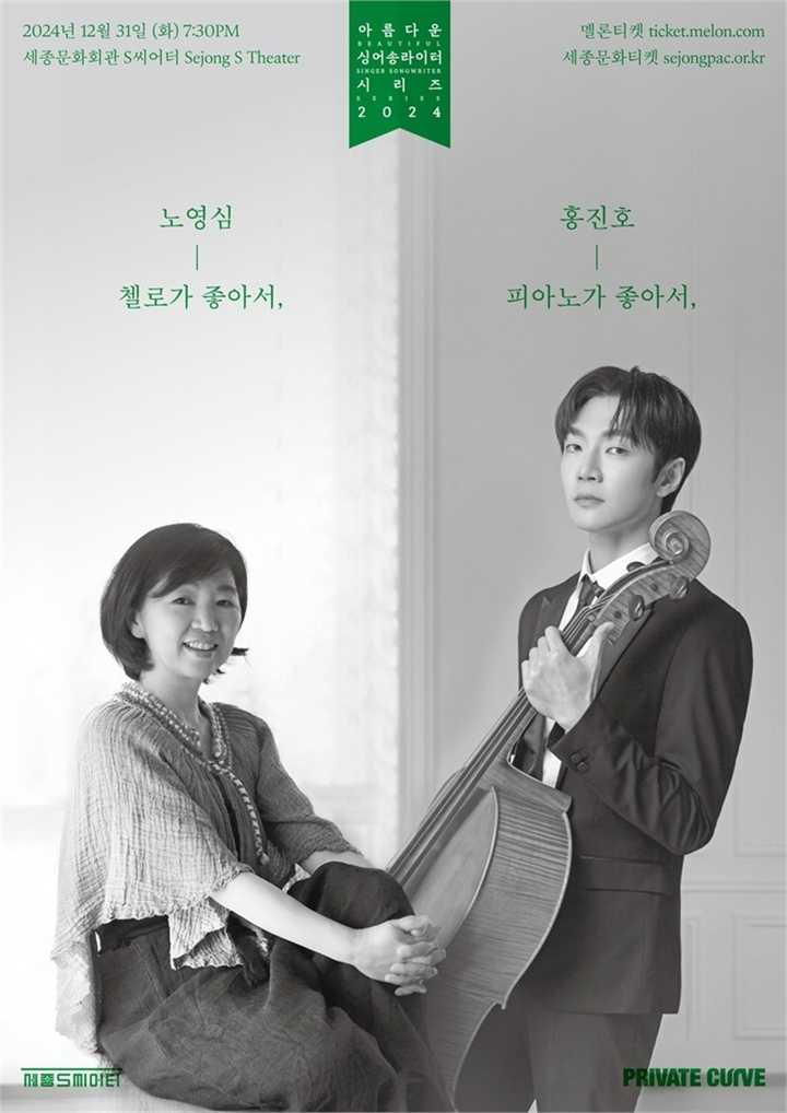 싱어송라이터이자 음악감독인 노영심과 첼리스트 홍진호가 오는 12월 31일 서울 세종문화회관 S씨어터에서 협연 공연 ‘노영심 첼로가 좋아서, 홍진호 피아노가 좋아서’를 선보인다.