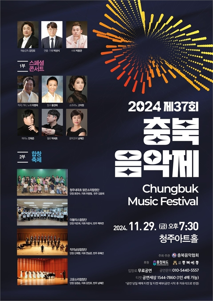 이번 음악제는 전문성과 지역성을 고루 갖춘 프로그램으로 충북의 음악적 저력을 보여주는 한편, 지역민들에게 특별한 문화 경험을 제공할 것으로 기대된다.