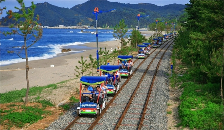 2010년 개장한 삼척해양레일바이크는 근덕면 궁촌마을과 용화마을을 연결하는 5.4km 구간의 철로를 따라 운영되고 있다. 해안 절경과 함께 레일바이크를 즐길 수 있는 이곳은 삼척의 대표적인 해양 관광지로 자리 잡았다.