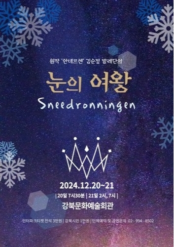 강북문화재단(대표이사 서강석)은 오는 12월 20일(금) 오후 7시 30분과 21일(토) 오후 2시, 7시에 강북문화예술회관 강북소나무홀에서 발레 ‘눈의 여왕’ 공연을 개최한다고 밝혔다.