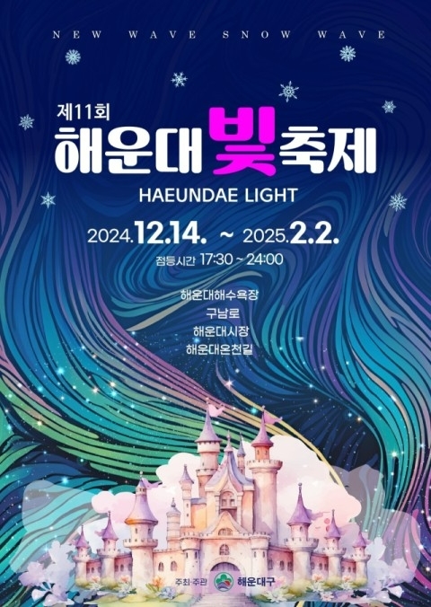 해운대구가 주최하는 제11회 해운대 빛 축제가 오는 14일부터 내년 2월 2일까지 화려하게 펼쳐진다. ‘새로운 물결, 눈부신 파도’를 주제로 열리는 이번 축제는 구남로, 해운대시장, 해운대 온천길, 해운대해수욕장 백사장 등 총 1.35㎞ 구간에서 화려한 빛의 향연을 선사할 예정이다.