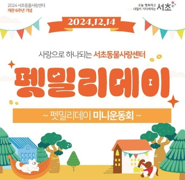 서울 서초구는 오는 14일 서초동물사랑센터 개관 6주년을 기념해 반려견 입양 가족들을 위한 특별한 행사인 '펫밀리데이(Pet+Family)'를 개최한다고 밝혔다.