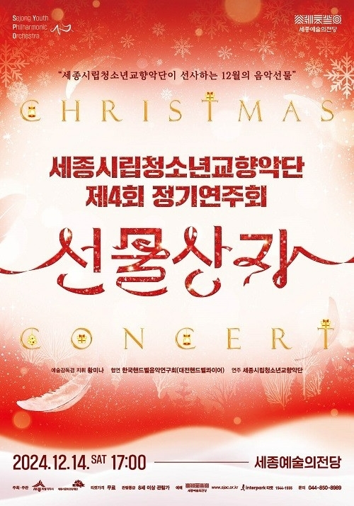 최민호 단장은 “시민들에게 올해 일상 속 작은 즐거움을 선사했던 세종시립청소년교향악단이 연말을 맞아 특별한 음악 선물을 준비했다”며 “따뜻하고 아름다운 선율로 한 해를 마무리하는 시간이 되길 바란다”고 말했다.