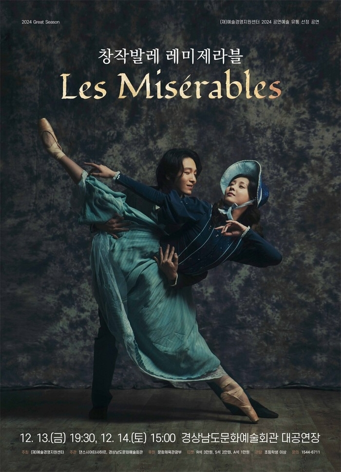 경남문화예술회관이 오는 13일 오후 7시 30분과 14일 오후 3시 대공연장에서 창작발레 레미제라블을 선보인다. 이번 공연은 (재)예술경영지원센터의 ‘2024 공연예술 유통’에 선정된 작품으로, 예술경영지원센터가 주최하고 댄스시어터샤하르와 경남문화예술회관이 주관하며 문화체육관광부가 후원한다.