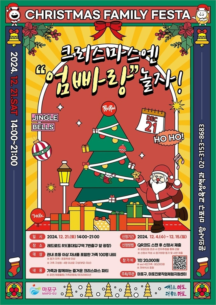 ‘크리스마스엔 엄빠랑 놀자!’는 마포구민들에게 소중한 추억과 따뜻한 연말 분위기를 선사하며 가족 간의 행복한 시간을 선물할 예정이다.