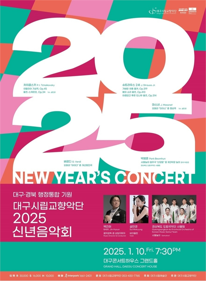 대구시립교향악단이 오는 1월 10일 오후 7시 30분 대구콘서트하우스에서 ‘2025 신년 음악회’를 개최한다. 이번 음악회는 백진현 음악감독 겸 상임지휘자의 지휘 아래, 다채로운 레퍼토리로 새해를 맞이하는 화려한 음악 축제를 선사할 예정이다.