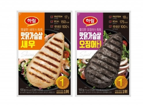 종합식품기업 하림이 닭가슴살에 탱글한 새우와 쫄깃한 오징어가 들어간 ‘맛닭가슴살 새우’와 ‘맛닭가슴살 오징어먹물’을 출시했다.