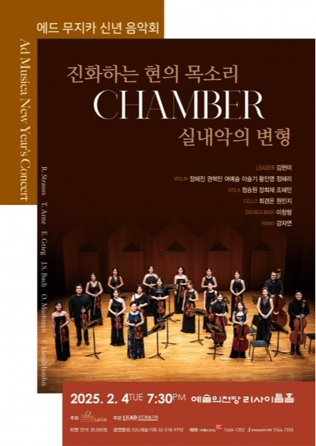‘음악의 본질로’라는 의미를 가진 실내악단 에드 무지카의 2025년 신년 음악회가 오는 2월 4일 화요일 오후 7시 30분 예술의전당 리사이틀홀에서 개최된다.