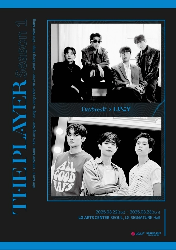 ‘THE PLAYER’는 LG아트센터가 LG유플러스와 스프링이엔티와 협력해 선보이는 새로운 공연 시리즈로, 무대를 즐기는 연주자와 관객 모두를 위한 음악 축제를 표방한다. 이번 시즌1은 데이브레이크와 루시가 호흡을 맞추는 특별한 공연으로 시작을 알린다.