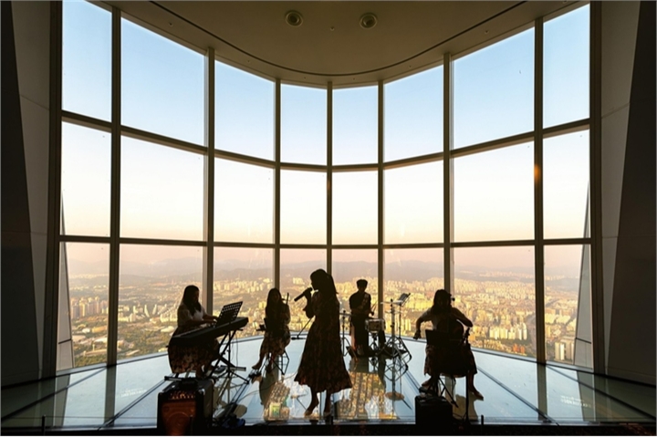 롯데월드타워 전망대 서울스카이에서는 29일과 30일 오후 6시에 퓨전 국악 공연이 열린다. 소리꾼과 해금 연주자의 조합이 돋보이는 그룹 ‘낭창낭창 흥키타카’와 클래식 악기와 드럼을 접목해 국악의 대중화를 선도하는 그룹 ‘라라 앙상블’이 흥겨운 무대를 선보인다.