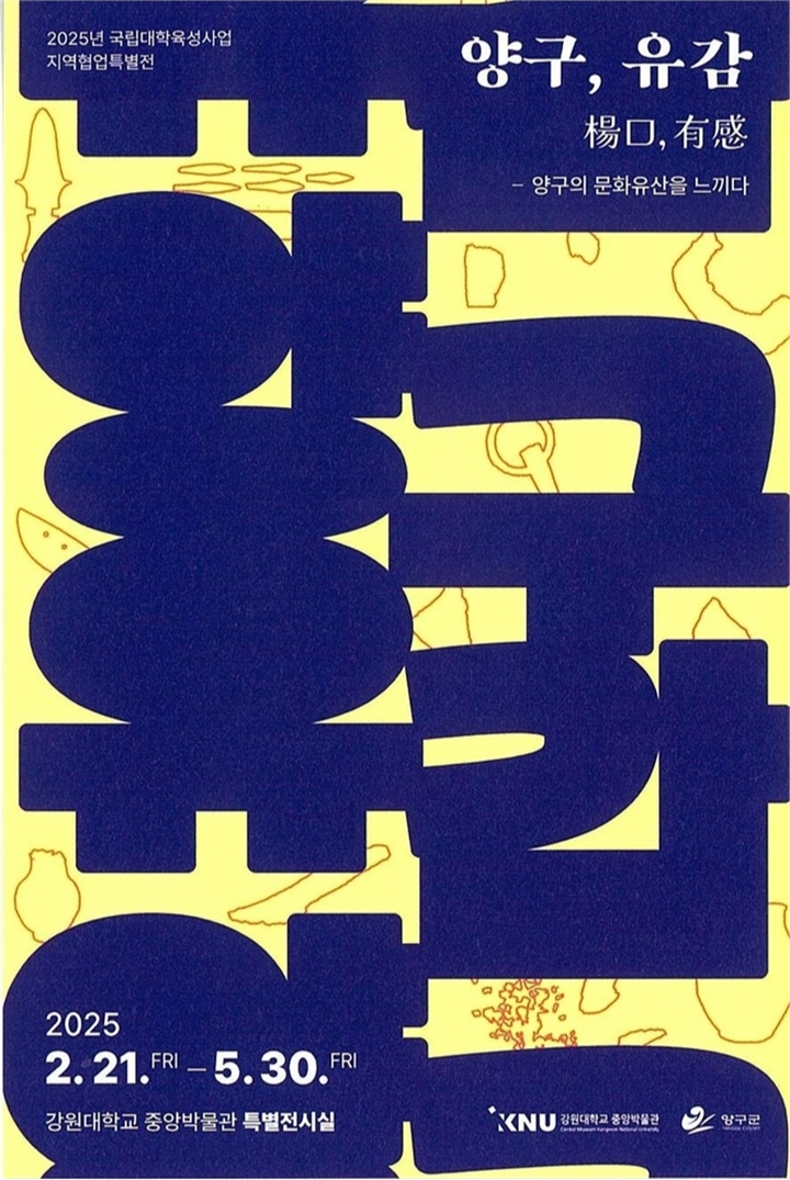 강원대학교와 양구선사박물관이 공동으로 주최하는 협업전 ‘양구유감’이 3월 21일부터 5월 30일까지 강원대 중앙박물관 특별전시실에서 열린다.