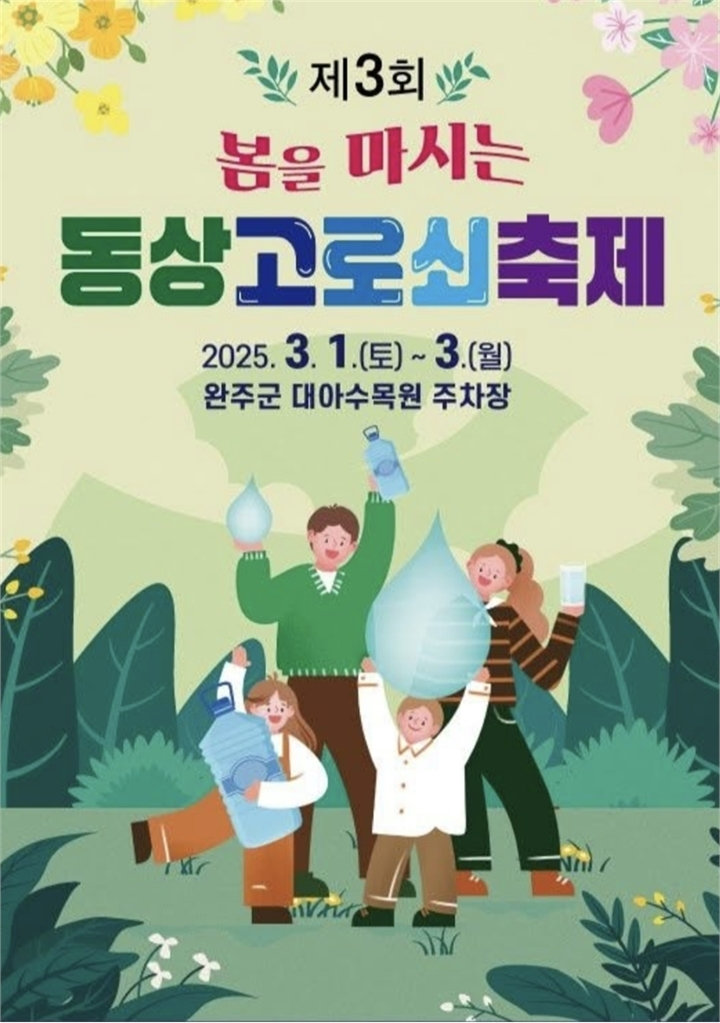 전북 완주군이 오는 3월 1일부터 3일까지 대아수목원 주차장에서 제3회 봄을 마시는 동상고로쇠 축제를 개최한다고 밝혔다.
