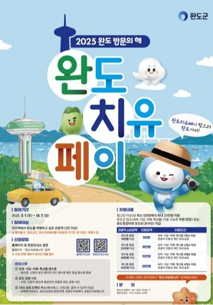 전남 완도군이 2025 완도 방문의 해를 맞아 관광객들에게 특별한 혜택을 제공하는 완도 치유 페이를 3월 1일부터 본격 운영한다고 밝혔다.