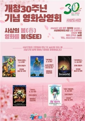 부산 사상구(구청장 조병길)가 개청 30주년을 기념해 사상도서관 특별 영화상영회 ‘사상의 봄(春), 영화를 봄(SEE)’을 개최한다고 밝혔다.
