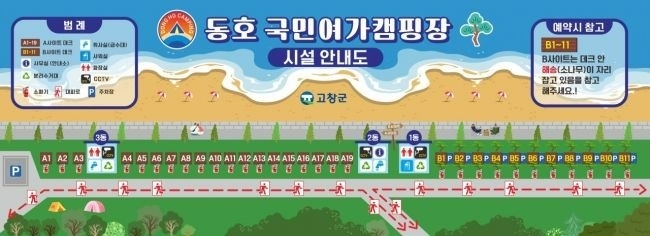 고창군이 3월 1일부터 동호 국민여가캠핑장을 재개장해 12월 31일까지 10개월간 운영한다고 밝혔다.
