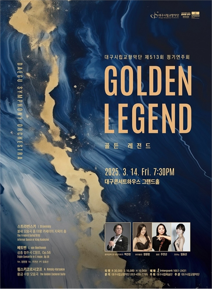 대구시립교향악단이 3월 14일 오후 7시 30분 대구콘서트하우스 그랜드홀에서 러시아 클래식 음악의 진수를 선보이는 ‘제513회 정기연주회’를 개최한다고 밝혔다. 이번 공연은 백진현 상임지휘자의 지휘 아래 스트라빈스키, 베토벤, 림스키코르사코프의 걸작들을 연주하며 관객들에게 깊은 감동을 선사할 예정이다.