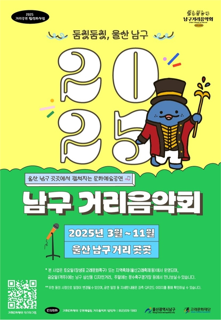 첫 공연은 장생포 고래박물관에서 열리는 ‘고래 불꽃쇼’와 함께 시작된다. 이후에도 남구 전역에서 사계절 내내 다채로운 공연이 펼쳐지며, 거리 곳곳을 축제 분위기로 물들일 예정이다.