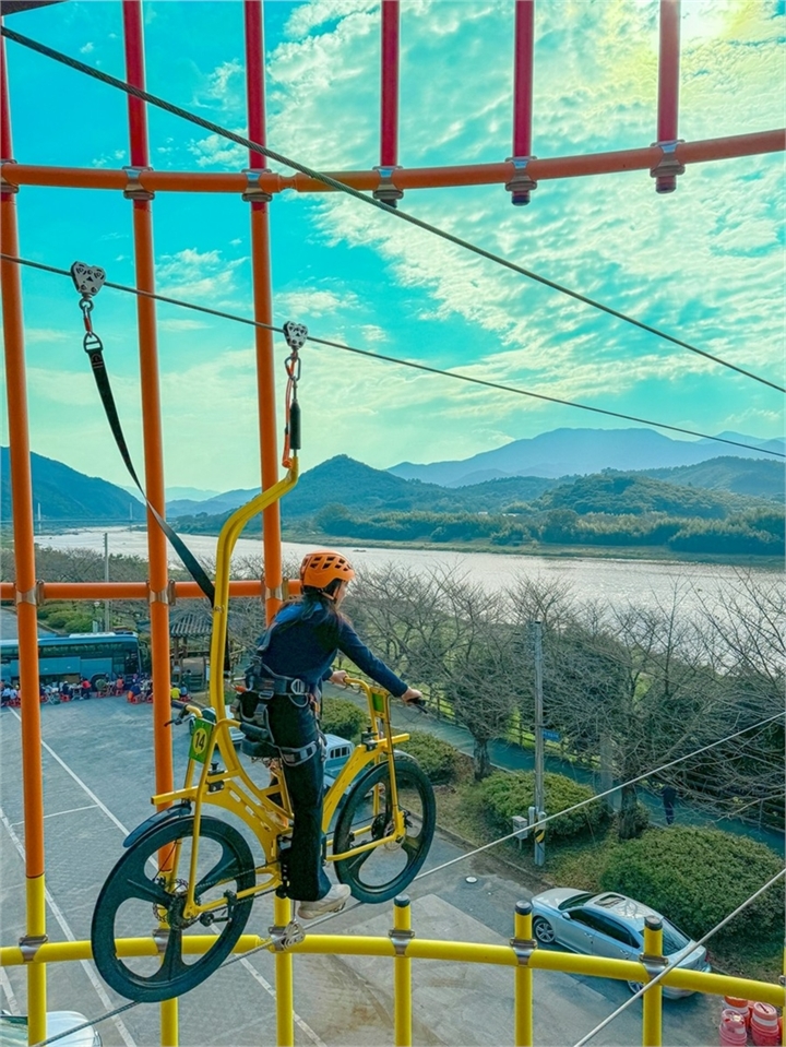 전남 구례군이 본격적인 상춘객 방문 시기를 맞아 3월 1일 문척면 오섬관광권역에서 ‘섬진강 스카이바이크 체험시설’을 정식 개장한다.