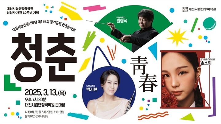 대전시립연정국악단이 오는 13일 대전시립연정국악원 큰마당에서 제195회 정기 공연 신춘음악회 ‘청춘’(靑春)을 선보인다. 이번 공연은 싱그럽고 생동감 넘치는 봄의 기운을 국악 선율과 한국 전통 무용, 다양한 협연을 통해 감각적으로 표현한다.