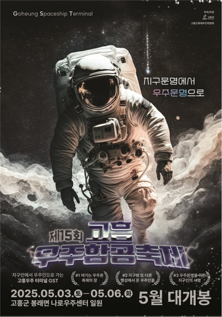 전남 고흥군은 제15회 고흥 우주항공축제를 오는 5월 3일부터 6일까지 나로우주센터 우주과학관 일원에서 개최한다고 밝혔다.